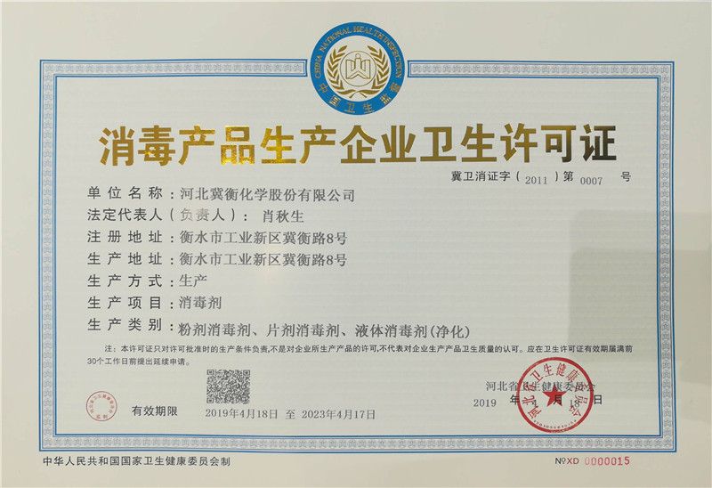 近日,河北省衛(wèi)生健康委員會(huì)批準(zhǔn)了我公司衛(wèi)生許可證的延期申請(qǐng)書,新的《衛(wèi)生許可證》有效期限到2023年4月17日。