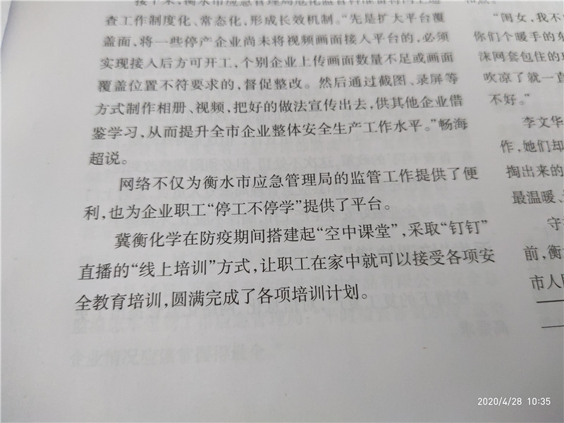 為了在嚴(yán)格落實(shí)疫情防控基礎(chǔ)上,全面落實(shí)公司2020年度職工安全培訓(xùn)計(jì)劃,我公司通過“釘釘”管理平臺的“釘釘直播”方式,大力開展職工安全培訓(xùn),圓滿完成一季度各項(xiàng)培訓(xùn)任務(wù),員工安全操作技能和操作水平都有了明顯的提升,我公司職工安全培訓(xùn)工作也被《河北省安全生產(chǎn)》等省級刊物報(bào)道。